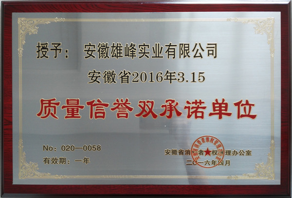 2016年質量信譽雙承諾單位